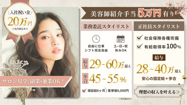 ★あなたの夢、応援します!続けられる美容師を。スタイリスト募集中★