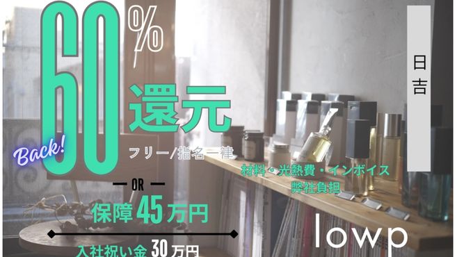 【一律60%還元×月1800名以上のお客様来店】&【入社祝金...