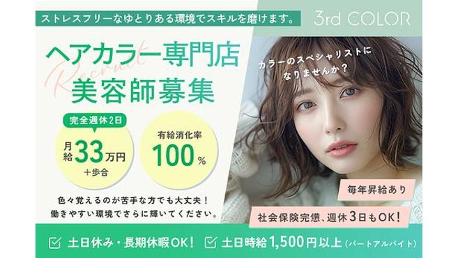 カラー専門店☆アシスタントでも安定の完全週休2日33万円☆パ...
