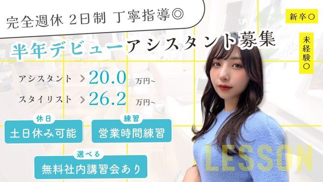 【賞与年2回・月8休】最速6か月でスタイリストデビュー!自分...