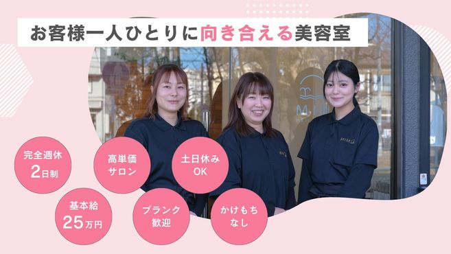完全週休2日/固定給25万円/社保完備の安定した環境で、穏やかに働く美容師募集