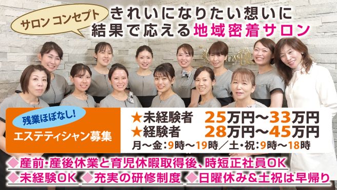 未経験やブランク有OK!エステティシャンとして自分らしく活躍!