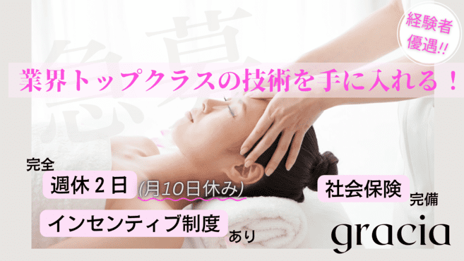「キレイ」を届けるには、まず働く私たちが満たされていること。 これが、私たちのサロンの揺るがない考えです。無理なく、そして心から楽しみながら仕事に向き合えるよう、給与、休日、そして心地よい人間関係を大切にした職場環境を追求しています。私たちが心から輝くことが、お客様の最高の笑顔につながると信じています。 -------- 交通費は上限30,000円/月まで支給。マイカー通勤も可能です。 遠方の方も安心してご応募いただけるよう、寮を完備しています。 寮費は25,000円/月(※水道・光熱費は実費)となります。 韓国エステの技術を基礎からしっかり習得でき、スキルアップを目指す方に最適な環境です。 最新の技術を身につけて、エステティシャンとして大きく羽ばたきませんか?