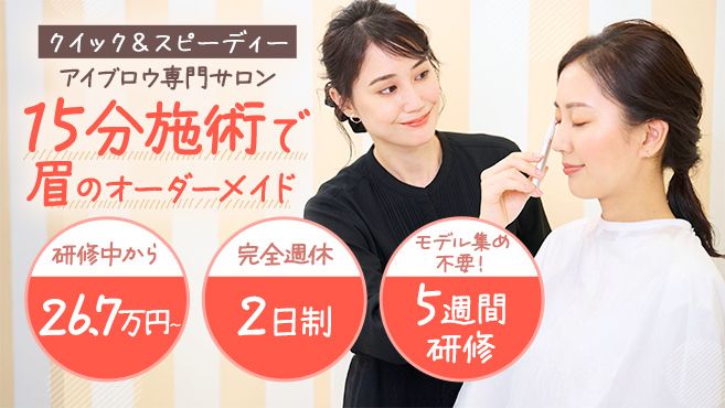 「このあと、久しぶりに友達に会うんです」 「デート前にちょっとだけ整えたくて」 ビューズは、そんなお客様の美しさも気持ちも上げられる眉専門サロンです。 お客様は女性だけでなく、男性や年配の方も。 一人ひとりの骨格に合わせて、その人にぴったりの形を、スピーディに提案します。 業界では珍しく「座ったまま」で施術が完了するから、「お買い物帰りや仕事帰りのちょっとした時間でキレイにしてもらえるから」と、気になったら気軽に立ち寄れるのも人気の理由です。 スタッフは髪色自由で、オシャレを楽しみながら働いてます。 堅苦しくないカジュアルな雰囲気の中、“私らしさ”を活かした施術スタイルが叶います。 100%マンツーマン施術で、リピーターのお客様だと15分で施術が完了。 ただの時短ではなく、“眉だけに集中”するプロの仕事です。 1日で施術できる回数は他サロンの3~4倍。 たくさん経験を積めるから、自然と手の動きもスムーズになって、技術力がぐんぐん伸びていきます。 はじめは誰もが未経験。 ビューズでは、専用の研修施設での5週間の育成を通して、プロデビューできるサポート体制が整っています。 美容業界で、「自分らしく、でもちゃんと成長したい」――そんなあなたに、ピッタリな環境です。