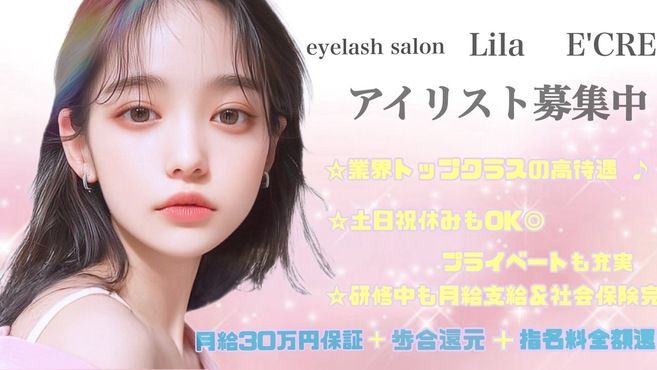 【PRポイント】 ・基本給34.5万円~(10公休) ・残業一切なし ・商業施設内や駅チカの好立地店舗が多数♪ ・未経験も経験者も大歓迎♪ ・ご家庭をお持ちの方も♪ ・パートナー間の人間関係良好 ・アットホームで働きやすい ・車通勤OK ・交通費全額支給 ・未経験でもブランクがあってもしっかりとした研修制度あり ・有名商業施設に出店 ・プライベートでも充実できる! ・ママさんアイリストも多数在籍 ・誕生日の当日と前日は休み ・誕生日の月は10公休 ・選べる働き方(7公休/8公休/9公休/10公休) ・日曜休み ・離職率も業界1低い ・毎月でも三連休可能 ・五連休も可能★