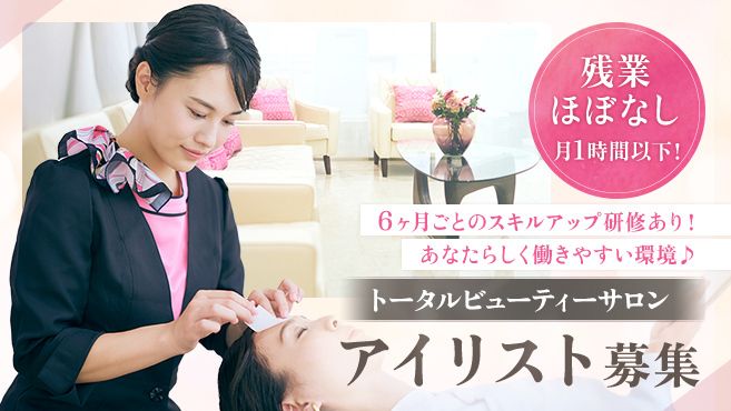 ◆休日数が選べる!毎年5連休あり ◆残業ほぼなし、1日7.5h勤務!毎日90分の休憩あり。研修もすべて勤務時間内に実施! ◆研修施設で専任講師による技術研修があるので、未経験でも安心! ◆あなたの奨学金返還の80%を会社が負担します! ※中途・新卒問わず対象 ◆まつげと眉の両方の技術に加えて、「深筋ケア」など独自の技術も習得できる。 ◆個人ノルマはなく、スタッフ全員で協力し合う風土。チームワークが自慢の働きやすい環境です。