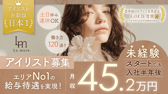 アイラッシュ・美容室・ネイル【全国グループ直営店200店舗突破!】 現在800名以上の社員が在籍しています。 アイラッシュ業界トップクラスの実績を持つORESSは、まだまだ急成長を続けていきます☆ 他社にない多様な働き方や、ずっと通いやすい好立地での勤務も魅力の一つ☆ 研修施設も東京・大阪・愛知・福岡に4箇所併設しており、特に未経験の方への技術指導は専任ディレクターも常駐しているので安心して学べます♪ 『お客様の笑顔のために全力を尽くす』がORESSグループの経営理念です。 私たちのお仕事はお客様あってのお仕事。 社員が豊かになるためには、まずはお客様に喜んで頂く頂くことが 何より大切だと考えています。 お客様愛溢れるORESSで一緒に楽しく働きましょう♪ 《業界トップクラスの福利厚生》 ◆社会保険完備(健康保険/厚生年金) ◆雇用保険完備 ◆労災保険完備 ◆交通費支給(1.5万円迄) ◆土日祝休みが月最大4日間取得可能! ◆土日祝日も希望休で取得OK ◆給与30万円以上 ◆店販手当あり ◆高額歩合還元あり(頑張れば頑張った分だけ給与UP♪) ◆指名料全額還元(お客様1人につき300円〜700円) ◆口コミ★5手当(1件につき最大500円支給) ◆皆勤手当あり ◆住宅手当/月1万円支給 ◆昇給あり(3ヶ月に1回昇給査定あり) ◆賞与あり(業績による) ◆管理美容師手当 業界最高レベル/毎月2万円支給 ◆社内行事参加回数達成で50,000円を支給 ◆働き方の多様化(自分にあった働き方が全120通りから選べます♪) ◆月最大10日休み ◆系列サロンでの社員販売・割引制度あり!自分磨きも◎ ◆明確な評価制度あり!頑張りに応じて収入UP! ◆年1回の健康診断あり ◆産休育休あり!取得実績率は100%! ◆業界最長クラスの研修制度あり◎未経験者研修制度充実 100%営業内研修です! ◆トレーナー講習あり ◆セカンドキャリア支援 店⻑、マネージャーなどのキャリアアップも支援! ◆コールセンターあり(電話対応&予約対応軽減) ◆施術道具は全て支給 ◆髪色自由(ハイトーンもOK) ◆ネイルデザイン自由(一部規定あり) 定員が採用決まり次第終了とさせて頂きます。 たくさんのご応募お待ちしております♪