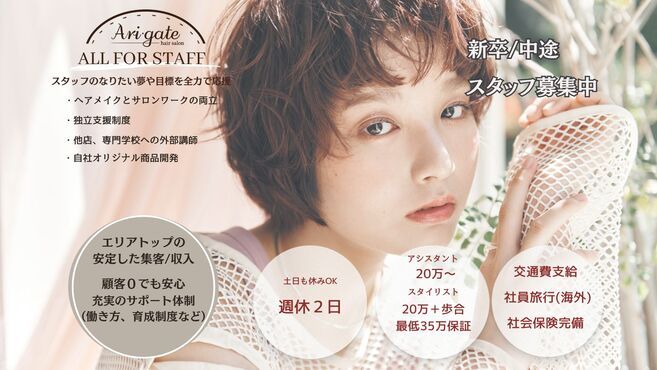 Ari•gateの求人 |美容師(ヘアメイクアーティスト)