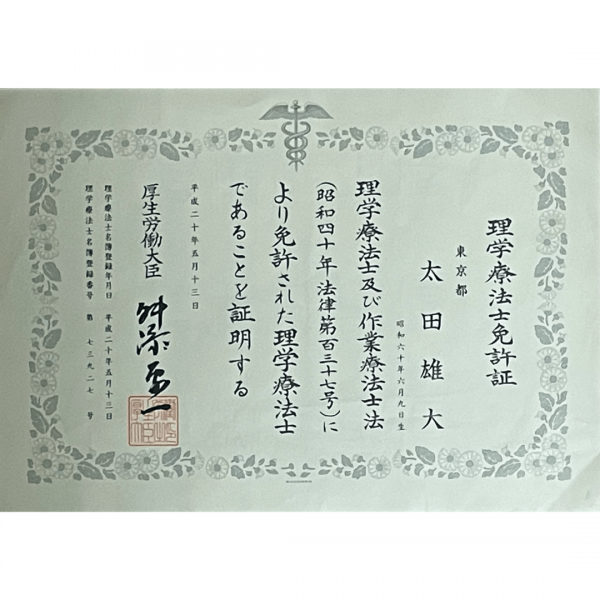 太田さんは専門学校に4年間通い、無事に理学療法士の資格を取得した