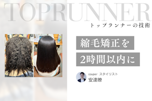 今回は、そんな「超時短縮毛矯正」を確立した、縮毛矯正講師としても人気の安達瞭さんにインタビュー。一般的な縮毛矯正との違いや習得のメリット、この技術を生み出すにいたった経緯について伺いました。