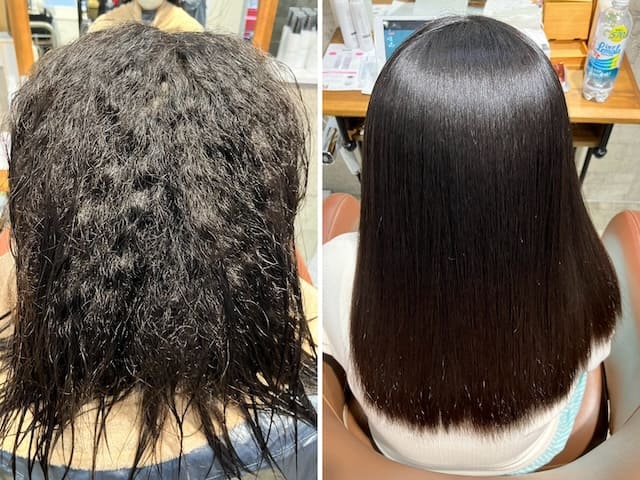 髪へのダメージが大きいなどの理由で、施術では一般的に避けられることも選択肢に含めながら、自分なりによりよい縮毛矯正を生み出そうと挑戦していました。すると、たまたまダメージ反応が少なく、施術時間も2時間に収めることができたんです。