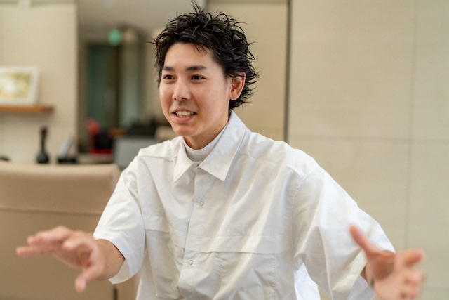 家族の影響が大きいです。僕の実家は美容室で、家族全員が美容師の仕事をしています。ですから、小さなころから施術を見る機会が多くて、自然と職業といえば美容師と思うようになっていたんです。