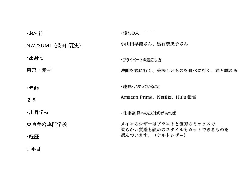 後編では、NATSUMIさんのモチベーションとなるアシスタントの存在や「女性美容師でナンバーワンになりたい」と語る今後の姿について伺いました。