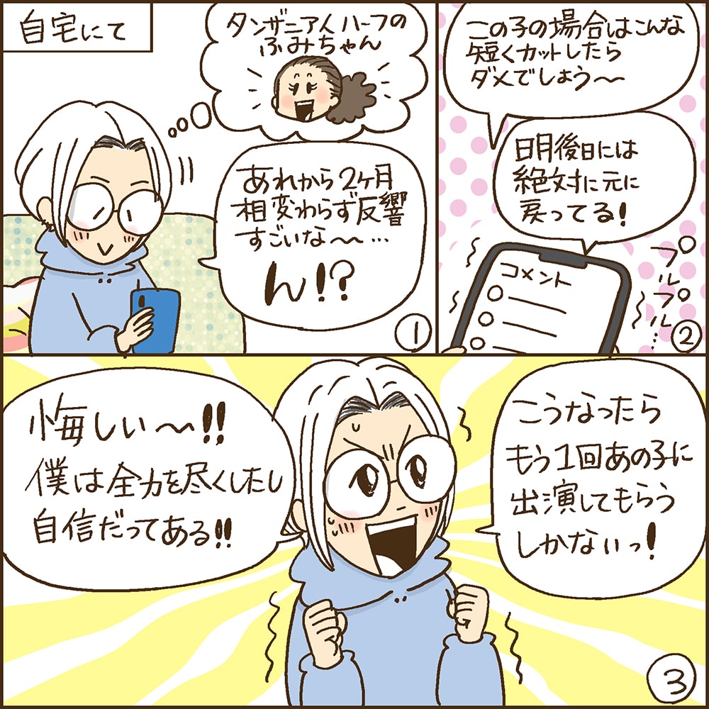 ――再生回数350万回以上(2021年6月現在)を記録した「タンザニアハーフの方をショートヘアに」の動画はまさに大反響でしたね。