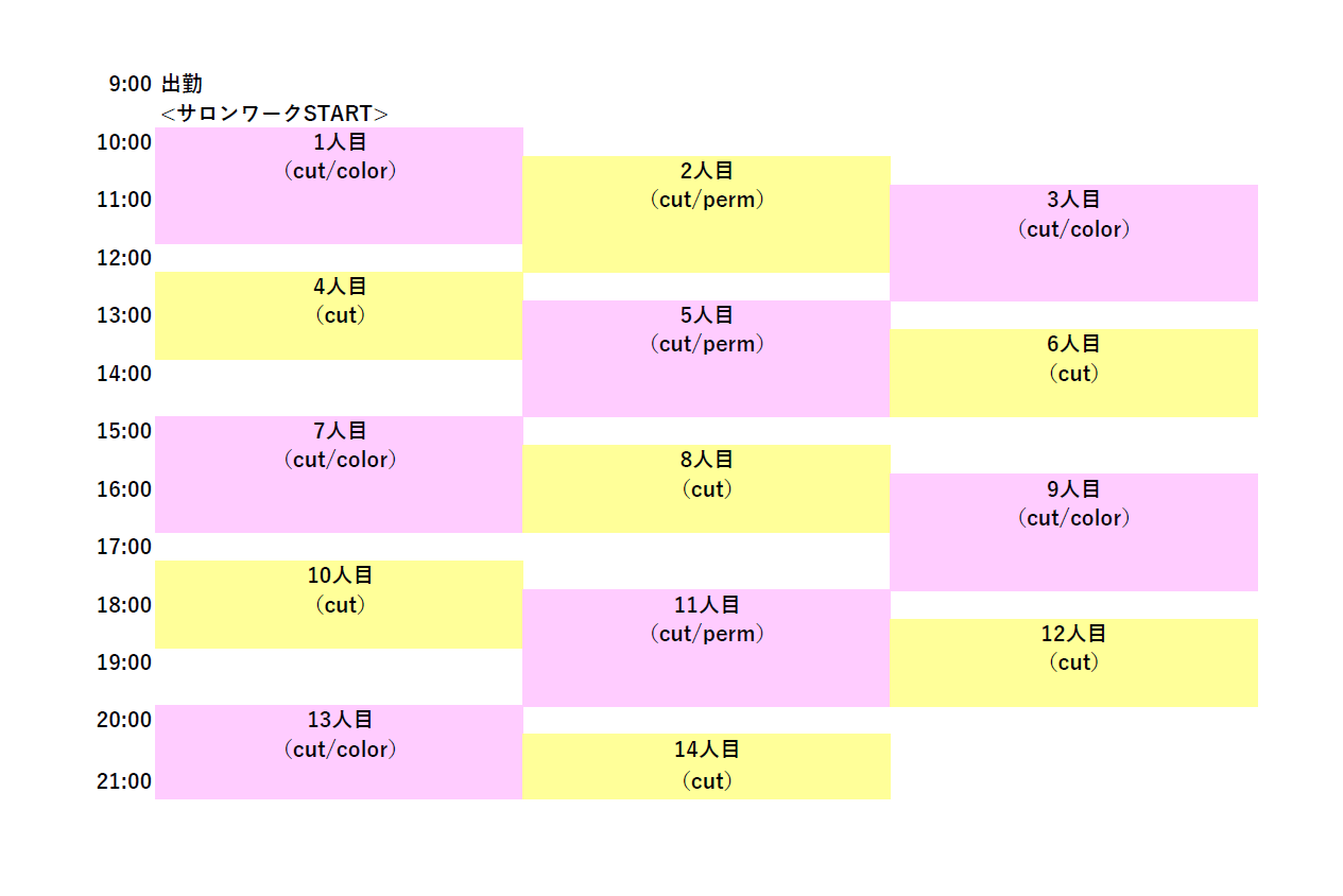 森さんの1日の流れ/3枠を基本に、30分ずらして予約を入れる
