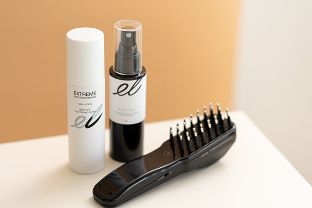 低周波が流れるデンキブラシ(R)を愛用中です。疲れた顔にマッサージすると目尻がピンと上がって、一瞬で顔が引き上がります。女優さんにも愛用されている方が多いアイテムなんですよ。ちょっと試してみますか?