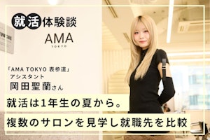 第一志望だった「AMA TOKYO」の採用試験に挑み、見事内定を勝ち取った岡田さん。人と話すのが得意ではなく、面接には苦手意識があったといいますが、入念な準備によって乗り越えたそうです。
