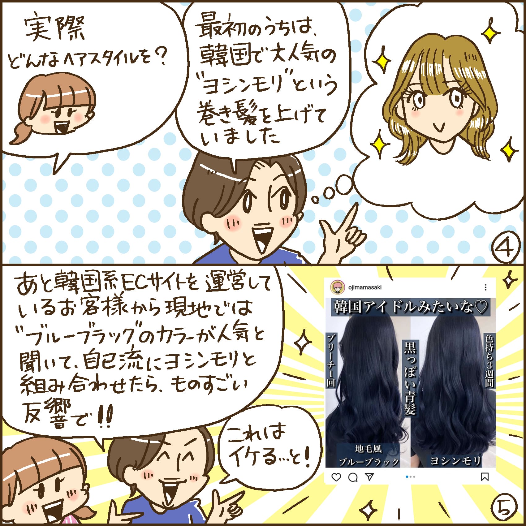 韓国の流行りが少しずつ日本にも流れてきて、「ブルーブラックで!」というご新規のお客様も増えるようになりました。だから、先取りはできたと思います。