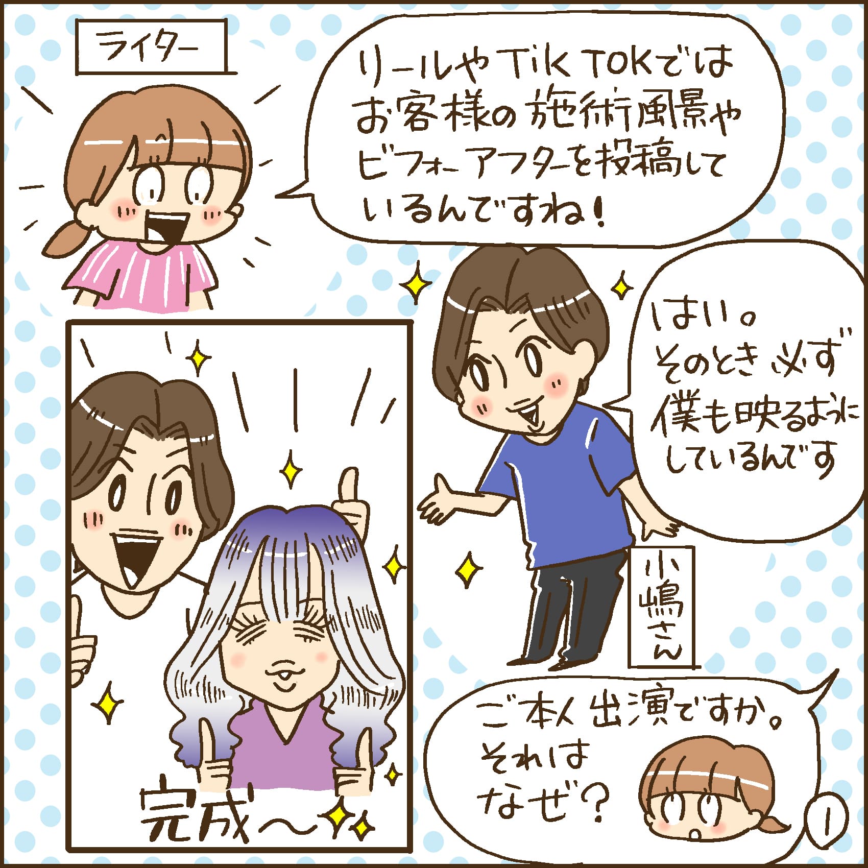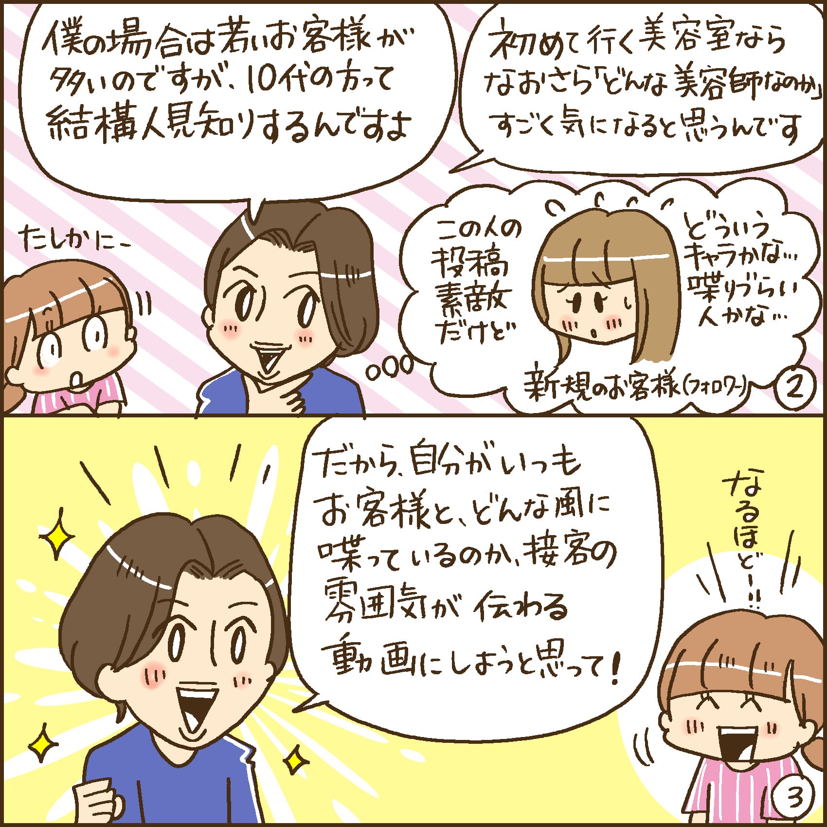 1. 親近感を伝えるため、美容師本人も出演するお客様の施術シーンを投稿