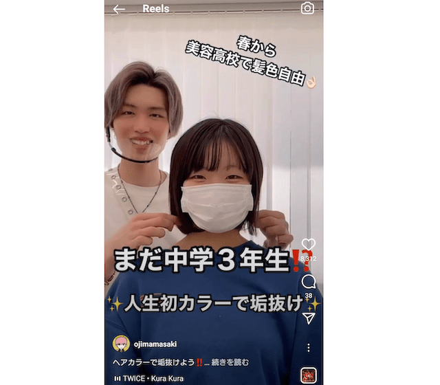 一方、リールではリアルな学生さんというか、フォロワーが「自分とちょっと似てるかも」と自己投影しやすい方に出ていただくようにしています。自分に近い子がビフォーアフターでどのくらい変わるのか気になる人はたくさんいると思うので。