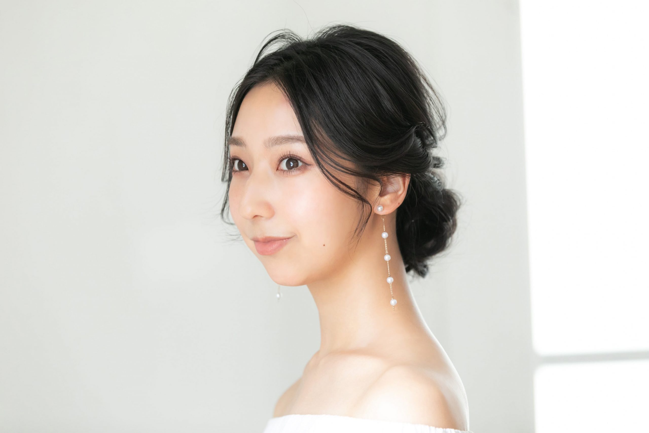 少し前まではヘッドボンネなどキラキラしたビジューのヘアアクセサリーを髪に飾ることも多かったんですが、最近はイヤリングだけつけて髪は質感デザインのみなど、シンプルにされる方が多い印象です。またゴールド系のアクセサリーが人気で、よりファッショナブルなスタイリングが多くなったなと感じます。