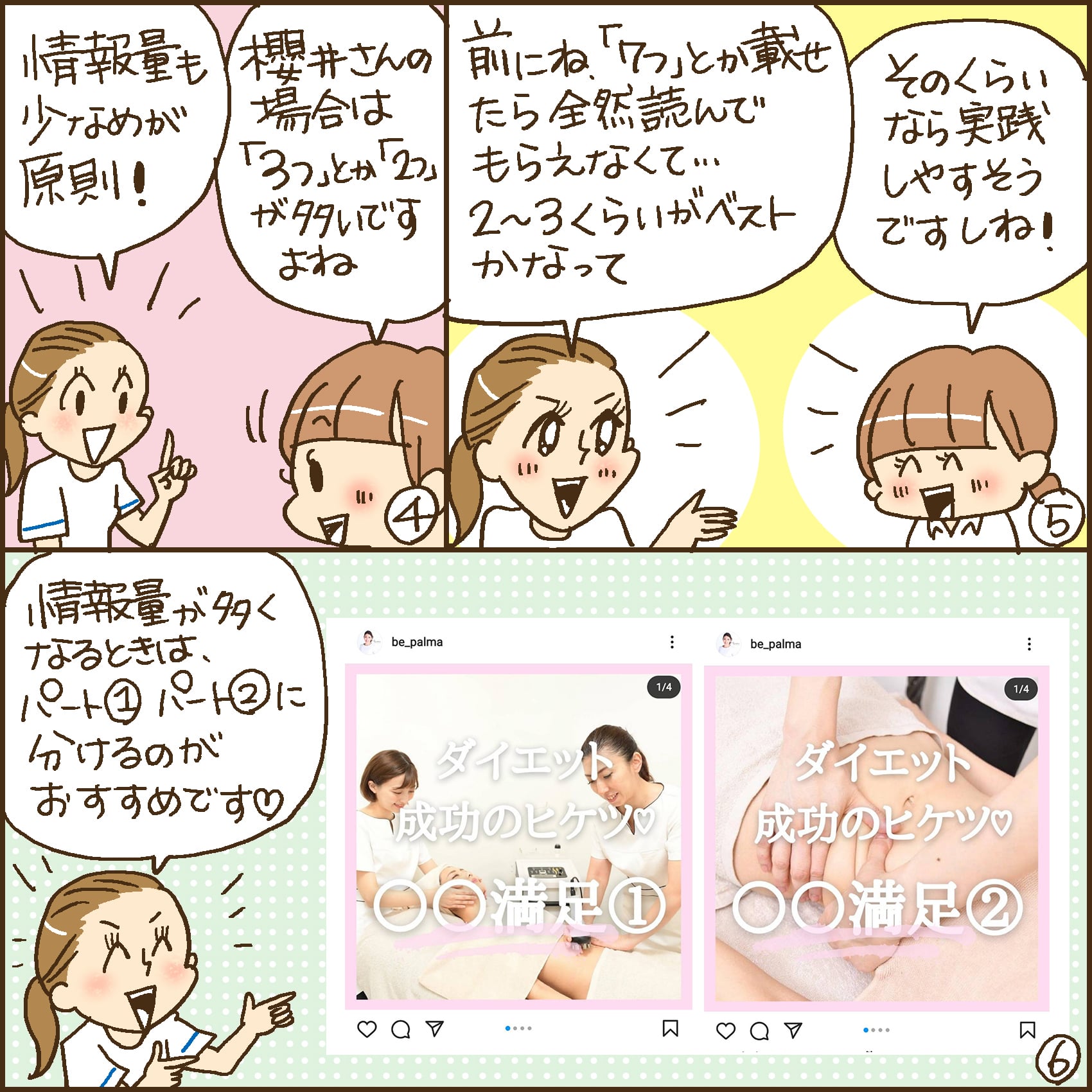 痩身エステサロン「Be-palma 美パルマ」オーナーの櫻井ひとみさんは、「見やすい」Instagramにこだわり、ビフォーアフター投稿やデザインの統一に力を入れ、地道にフォロワー数を増やしてきました。最近では、施術効果だけでなく、サロンの知識力や想いをチェックしてサロンを選ぶ人が増えているようで、それに対する櫻井さんの対策とは?