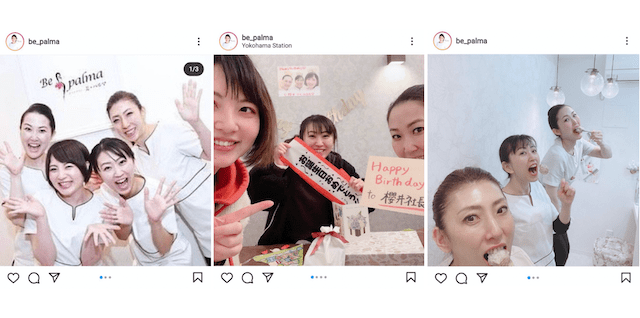 そうなんです。どんなキャラクターのスタッフがいるのか気になりませんか? Instagramでは私一人が映るのではなく、他のスタッフとじゃれ合っているシーンやバックヤードを積極的に見せたりしています。
