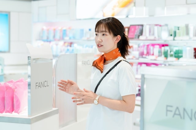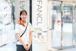 2015年4月、(株)ファンケルに販売職正社員として入社。小田急新宿店に配属後、順調にキャリアを重ね、北千住マルイ店では店長に就任。2019年6月より産休と育休を取得し、2021年5月よりルミネ北千住店にエリア限定正社員として復職する。