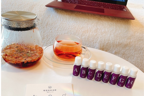 嗅覚反応分析は、オンラインでご注文いただくこともできます。こちらからキットを郵送して、ご自宅で香りを並べていただき、分析させていただきます。先日のお客さまは、リモートワークの方だったのですが、オンオフの切り替えが難しく、どうしても仕事モードに入りにくいとのことでした。その方に合ったアロマや健康法をお伝えして自宅で実践してもらったところ、「おすすめしてもらった香りを嗅ぎ、身体を動かすようにしたら切り替えができて、仕事モードに入りやすくなった」と生活の変化を感じていただけました。
