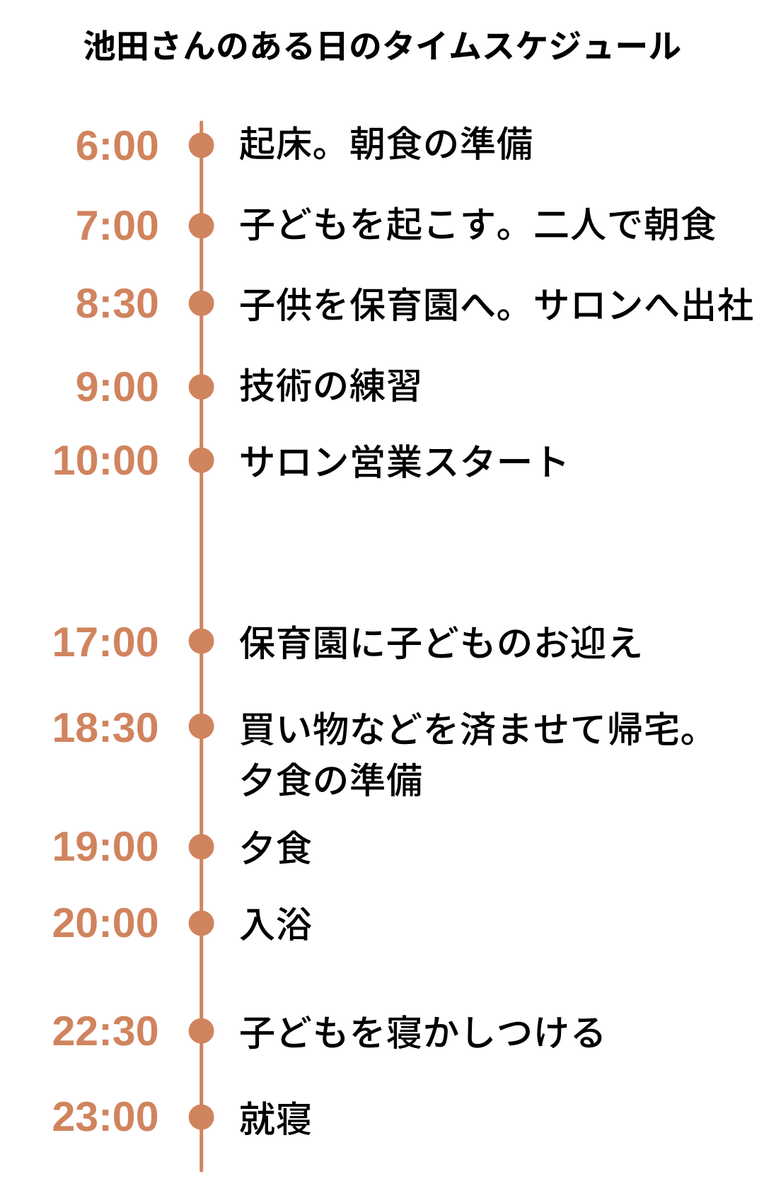 後編では子育てをしながら、スタイリストとしてサロンに経つ傍ら店舗を総括するマネージャーの顔を持つ池田さんの仕事ぶりをご紹介します。