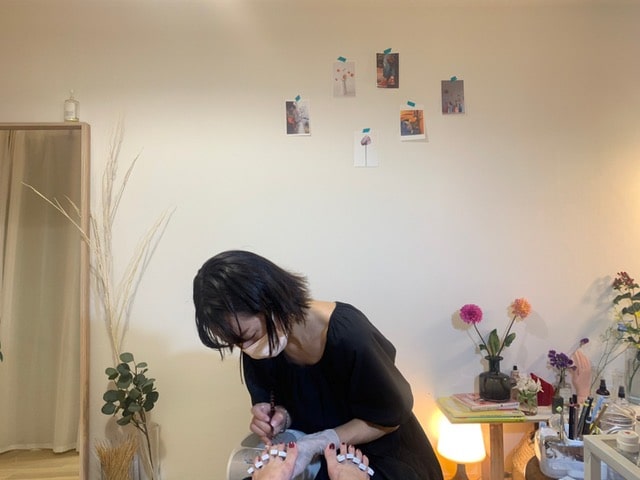すごく落ち込みましたね。自分のネイルという仕事が医療関係の方のように社会の中でだれかを助けたりできない、なんの役にも立たない仕事なんだなと思ってしまって。でもそのすごく落ち込んでいるときに、お年寄りに赤やピンクのマニキュアを塗ってあげることにより元気になったり笑顔を取り戻してくれるネイルセラピーというものがあると知って、希望を感じられたんです。