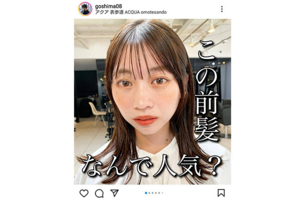 これはシンプルに耳かけしただけのへスタイルですが、前髪のデザインを発信した投稿なので、つくり込んだスタイリングは不要だなと。ヘアスタイルを載せるときに意識しているのは「どこにポイントを絞るか」ということ。潔くシンプルに載せた方がポイントがわかりやすくなるんです。