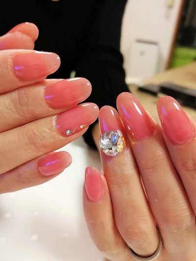 銀行員を辞め、夫の転勤先で就活をしていたときに、たまたま見つけたネイルサロンで働き始めました。銀行員時代はワンカラーなど地味なネイルしかできなかったのですが、その制約から解き放たれたことにより2週に1回のペースでいろんなジェルを付け替えていました。そうしたら、アセトンで爪が剥離してしまい、小指に至ってはピンクの部分が半分くらいに減ってしまって…。剥離の治し方も分からないし、ネイルサロンで働いているのでとにかくジェルをつけ続けていました。