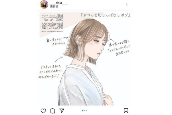 この投稿も、先に「こういうボブをイラストで紹介したい」というのを考えて、普通のカメラで撮影してからイラスト化したんですよ。