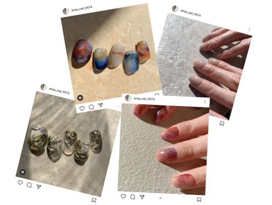 ネイリストARISAさんのInstagramは、色の重ね方、素材ののせ方、質感…といったニュアンスアート独特の技法を動画で見せる「artレシピ」が反響を呼んでいます。また、ネイル作品をドラマチックに見せる撮影テクニックにも注目。ARISAさんのつくるニュアンスアートは、時間帯によって、または屋内と屋外とで表情が変わりますが、一枚の写真にその奥行き感を見事に表現しています。