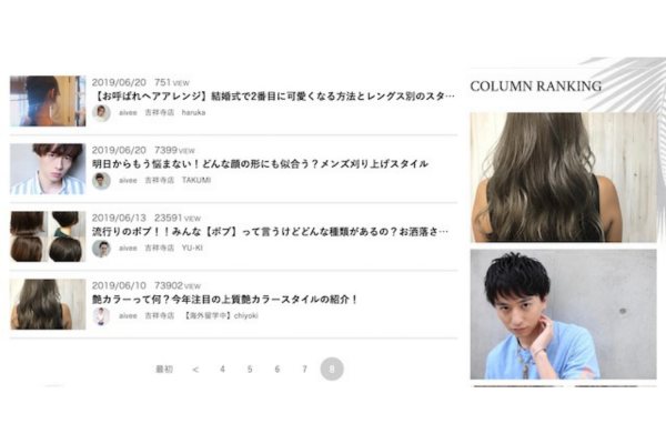 1.コラムやヘアカタログなどのコンテンツを充実させる