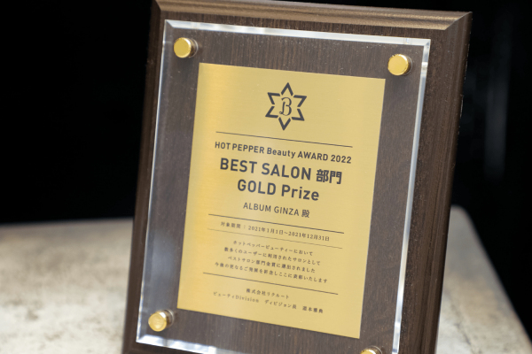 ホットペッパービューティーアワード2022「GOLD Prize」に輝いたALBUM GINZA。グループとしては3年連続受賞の新宿店に次いで、4年連続の受賞という快挙です。