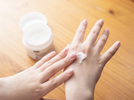 ぬるま湯で洗い流した後は、かんたんで構わないので、ハンドクリームを塗って保湿を保つことを心がけてみてください。