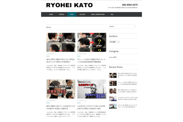 いくら技術が優れていても、その発信の仕方が分からなければお客さまは来てくれません。そこでシェアサロンに移ってから私がはじめたのが、ブログでの情報発信です。髪に関してお悩みを抱えている男性をターゲットとして、検索エンジンで上位にヒットするよう記事を製作しています。
