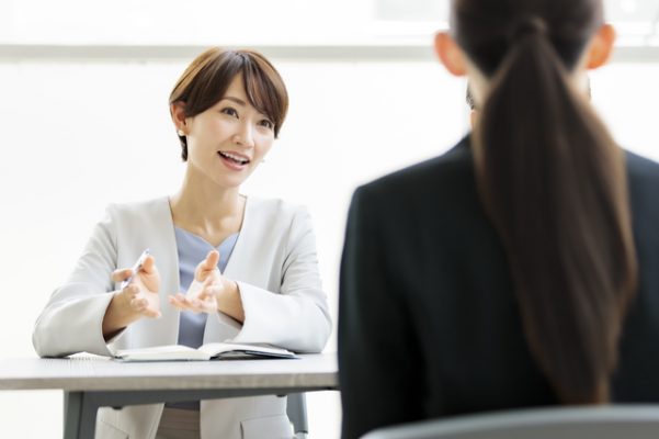 面接時は身だしなみのほか、マナーを意識することも必要です。言葉遣いやハキハキとした受け答え、そして笑顔と堂々とした姿勢を心掛けましょう。