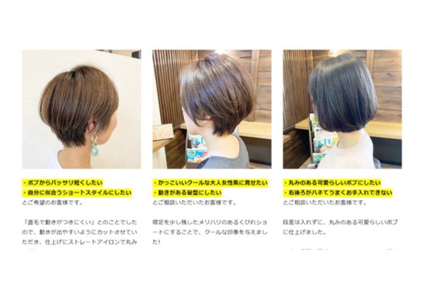 2.集客を上げるため、「ショート・ボブ専門美容室」として広告を打ち出した