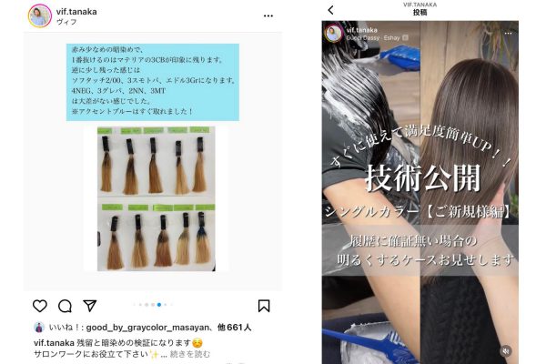 ――田中さんはインスタで施術のコツやカラーレシピの投稿などをされていますが、どれもすごく詳しい内容で驚きました。