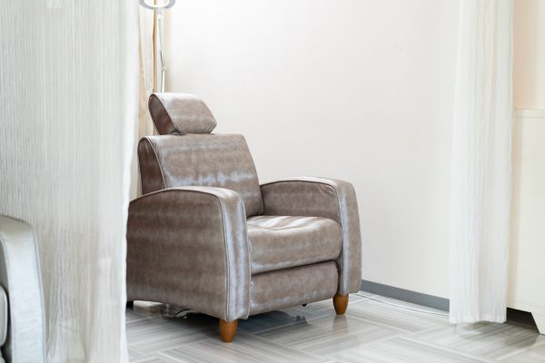 まず、施術をするイスがありません。美容院でシャンプーをするときに使うイスでは、施術者がストレスなく眉のお手入れができませんでした。そこで家具メーカーに発注して作ってもらうことにしたんです。ベースになっているのは、一般の家庭でも使われている電動のリクライニングソファで、施術しやすいように、首を支えるヘッドの部分が倒れるように改良してもらいました。