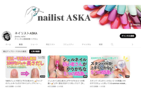 YouTubeの流行とともに、チャンネルを開設し、そこからファンを増やすネイリストも多くなってきました。今回お話を伺うASKAさんもチャンネル登録者数約1.8万人の人気ネイリスト。プライベートネイルサロンの運営からYouTubeへ活躍の場を移行し、現在ネイルの仕事はYouTube1本で行っているとのことです。前半ではYouTubeを始めたきっかけや人気を得るまでの道のりをお伺いします。