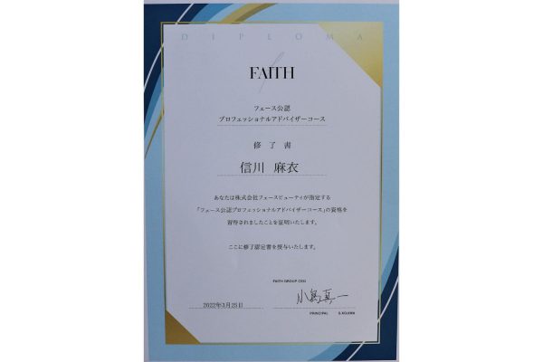 わたし、本当にFAITHが好きなんです。単品でFAITHを取り入れているサロンも多いですが、わたしは、シリーズで使うと結果が出ることを実感しているので、自信を持ってライン使いをおすすめしています。FAITHについてきちんとした知識があり、FAITHのことならこの人に聞けばなんでも分かるということを示す資格があったらいいなと思って、資格認定制度を提案させていただきました。