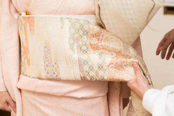 結婚式場では、主役となる新郎新婦の和装を着付けるだけでなく、家族や一般参列客に着物を着る人がいれば、その人々の着付けも行います。大切なお祝いの席なので、美しく、かつ着崩れることのないようにしっかりと仕上げなければなりません。