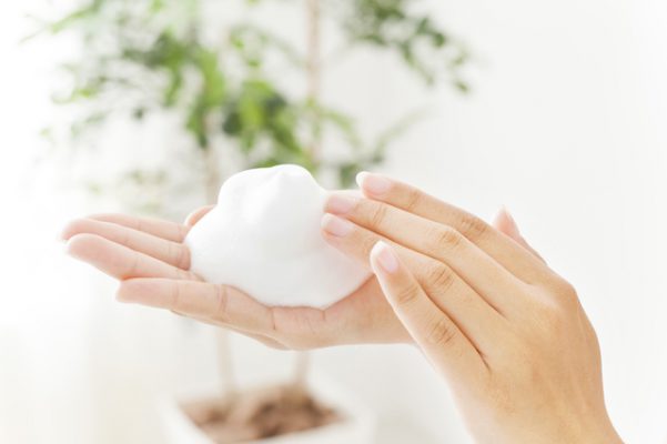 手や洗顔ネットで洗顔料をしっかりと泡立てて、泡のかたまりを作りましょう。泡で出てくる洗顔料を使うのも手です。