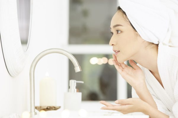 お風呂上りには、まず顔をタオルでそっとおさえて水気を吸収させます。目元は、まぶたの上からティッシュで優しくおさえて水気をとりましょう。