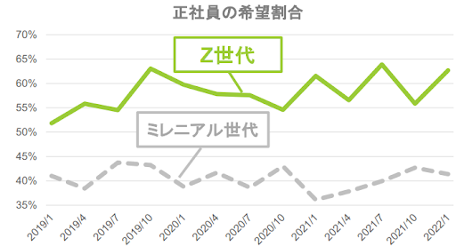 ミレニアル世代に比べて、正社員就業を希望するZ世代が多いのはなぜでしょうか?