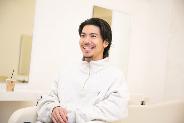 このサロンでなければならない志望理由や美容師として大切にしていきたいことなどを質問されました。その際、僕は「お客さまだけでなくスタッフにも共感を大切に、意見を押し付けないコミュニケーションを取り、友達のように親しみやすい美容師でありたい」と答えました。その気持ちは今も変わらず大切にしており、現在の役職でもスタッフとの相談やアドバイスをする際に活きていると感じています。